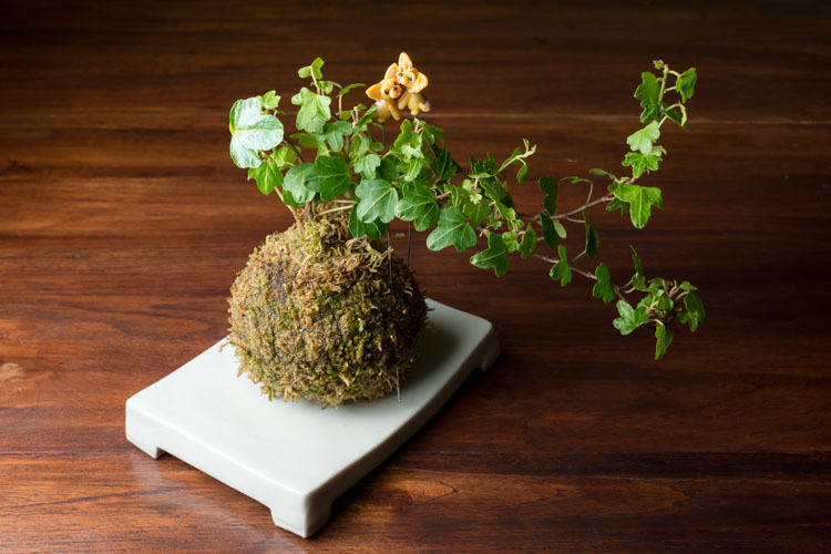 オシャレなヘアスタイルの2人をスティックに仕上げ、苔玉と組み合わせました。