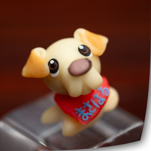 犬種の特徴をデフォルメして可愛らしく表現した作品です。
